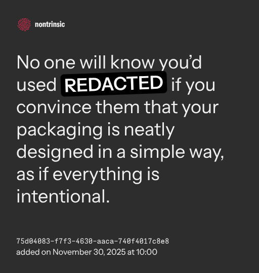 π€ shareNo one will know you’d used REDACTED if you convince them that your packaging is neatly designed in a simple way, as if everything is intentional.