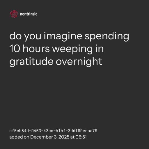 π€ sharedo you imagine spending 10 hours weeping in gratitude overnight