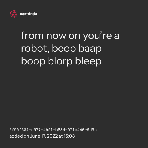 ๐ค sharefrom now on you’re a robot, beep baap boop blorp bleep
