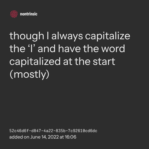๐ค sharethough I always capitalize the ‘I’ and have the word capitalized at the start (mostly)