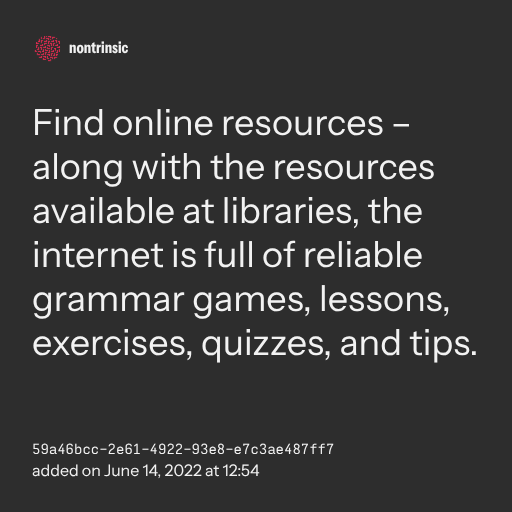 ๐ค shareFind online resources – along with the resources available at libraries, the internet is full of reliable grammar games, lessons, exercises, quizzes, and tips.