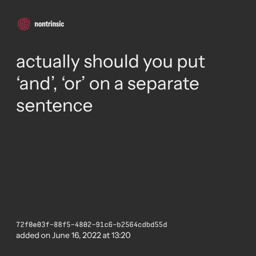 ๐ค shareactually should you put ‘and’, ‘or’ on a separate sentence