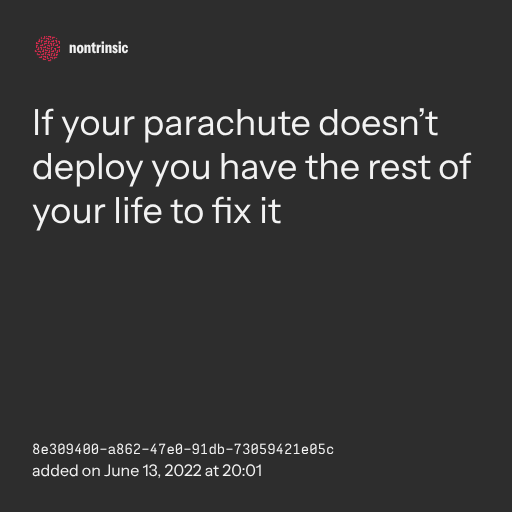 ๐ค shareIf your parachute doesn’t deploy you have the rest of your life to fix it