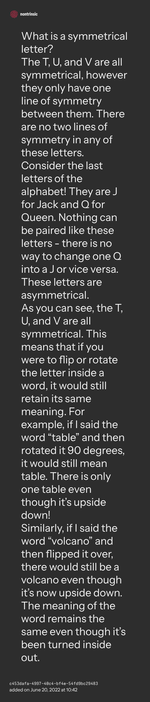 Similarly, if I said the word “volcano” and then flipped it over, there would still be a volcano even though it’s now upside down. The meaning of the word remains the same even though it’s been turned inside out.