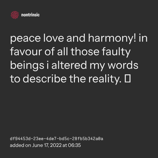 ๐ค sharepeace love and harmony! in favour of all those faulty beings i altered my words to describe the reality. ๐๏ธ