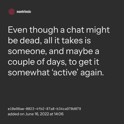 ๐ค shareEven though a chat might be dead, all it takes is someone, and maybe a couple of days, to get it somewhat ‘active’ again.