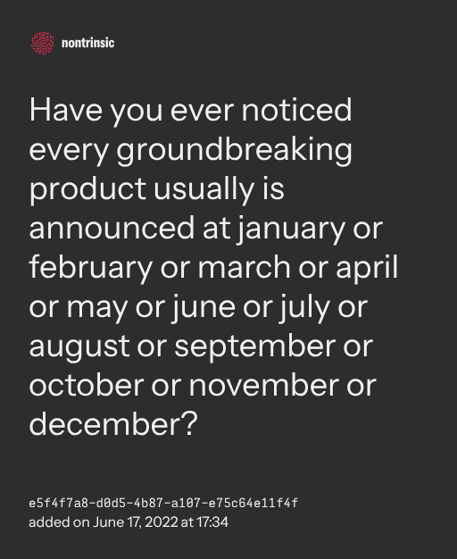 ๐ค shareHave you ever noticed every groundbreaking product usually is announced at january or february or march or april or may or june or july or august or september or october or november or december?
