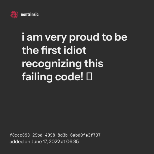 ๐ค sharei am very proud to be the first idiot recognizing this failing code! ๐