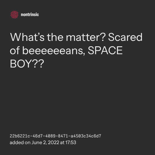 What’s the matter? Scared of beeeeeeans, SPACE BOY??