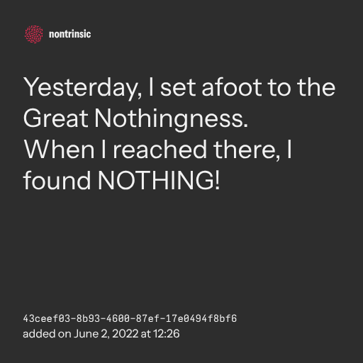 π€ shareYesterday, I set afoot to the Great Nothingness.