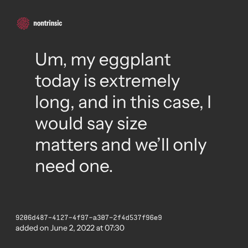 π€ shareUm, my eggplant today is extremely long, and in this case, I would say size matters and we’ll only need one.