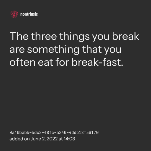 π€ shareThe three things you break are something that you often eat for break-fast.