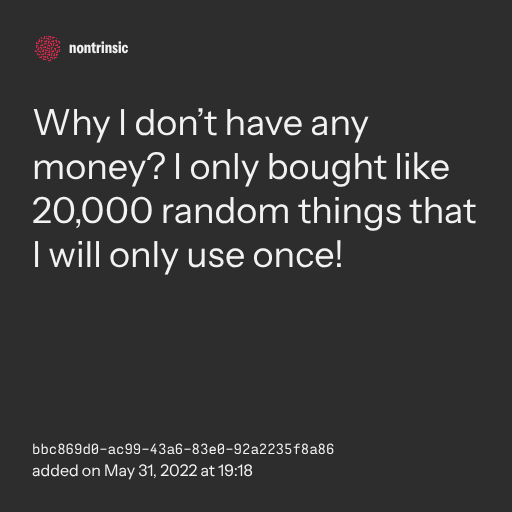 π€ shareWhy I don’t have any money? I only bought like 20,000 random things that I will only use once!
