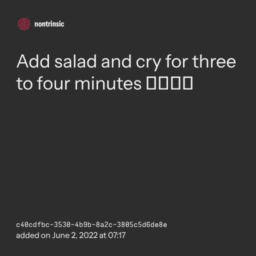 π€ shareAdd salad and cry for three to four minutes ππ ππ