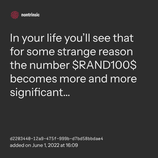 π€ shareIn your life you’ll see that for some strange reason the number $RAND100$ becomes more and more significant…