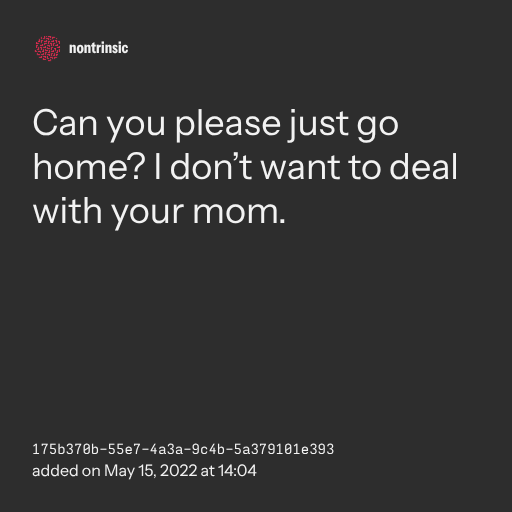 π€ shareCan you please just go home? I don’t want to deal with your mom.