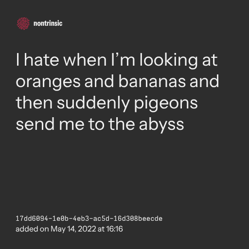 π€ shareI hate when I’m looking at oranges and bananas and then suddenly pigeons send me to the abyss