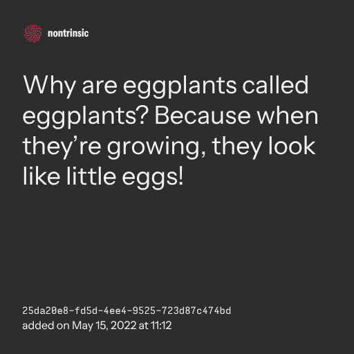π€ shareWhy are eggplants called eggplants? Because when they’re growing, they look like little eggs!