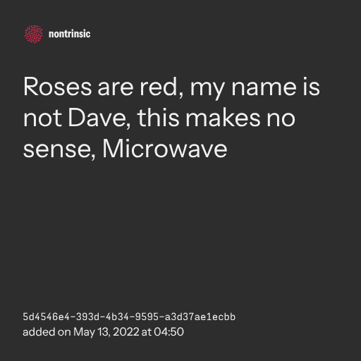 π€ shareRoses are red, my name is not Dave, this makes no sense, Microwave