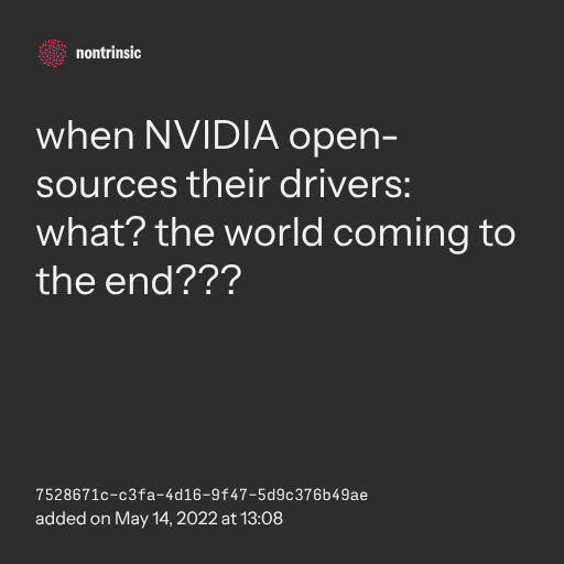 π€ sharewhen NVIDIA open-sources their drivers: what? the world coming to the end???