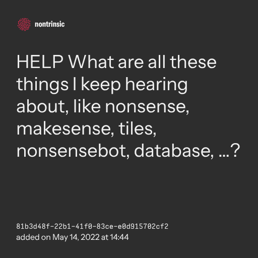 π€ shareHELP What are all these things I keep hearing about, like nonsense, makesense, tiles, nonsensebot, database, …?