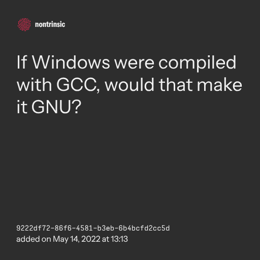 π€ shareIf Windows were compiled with GCC, would that make it GNU?