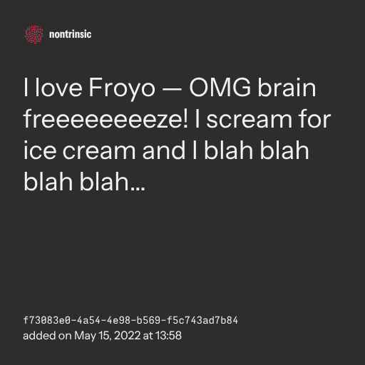 π€ shareI love Froyo β OMG brain freeeeeeeeze! I scream for ice cream and I blah blah blah blahβ¦