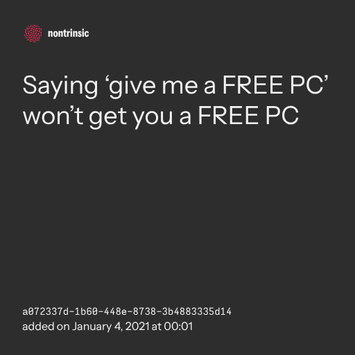📤 shareSaying ‘give me a FREE PC’ won’t get you a FREE PC