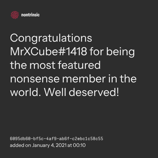 π€ shareCongratulations MrXCube#1418 for being the most featured nonsense member in the world. Well deserved!