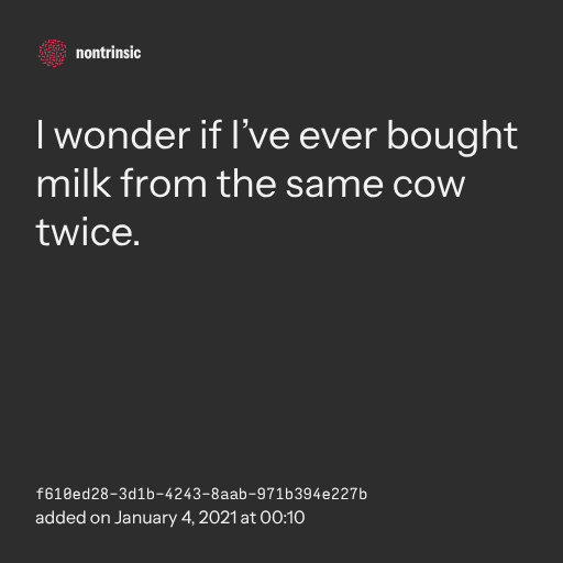 π€ shareI wonder if I’ve ever bought milk from the same cow twice.