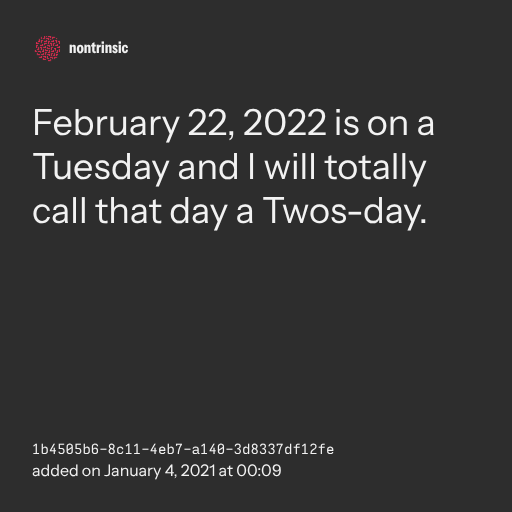 π€ shareFebruary 22, 2022 is on a Tuesday and I will totally call that day a Twos-day.