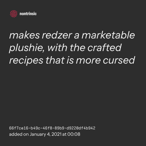 π€ sharemakes redzer a marketable plushie, with the crafted recipes that is more cursed