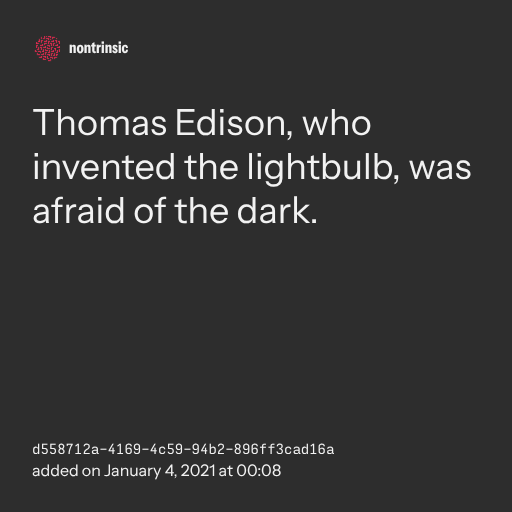 π€ shareThomas Edison, who invented the lightbulb, was afraid of the dark.