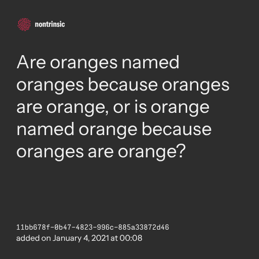 π€ shareAre oranges named oranges because oranges are orange, or is orange named orange because oranges are orange?