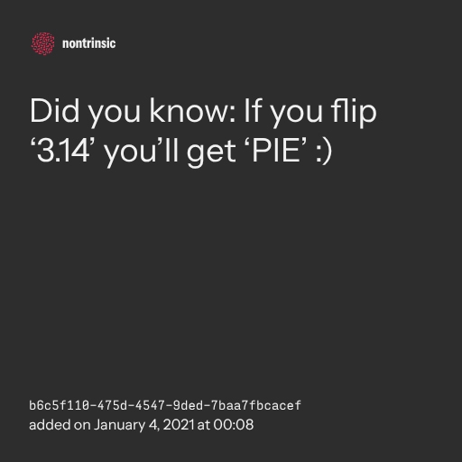 π€ shareDid you know: If you flip ‘3.14’ you’ll get ‘PIE’ :)