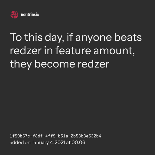 π€ shareTo this day, if anyone beats redzer in feature amount, they become redzer