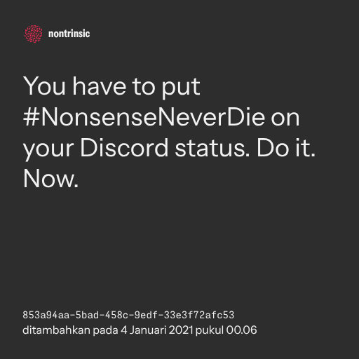 π€ shareYou have to put #NonsenseNeverDie on your Discord status. Do it. Now.