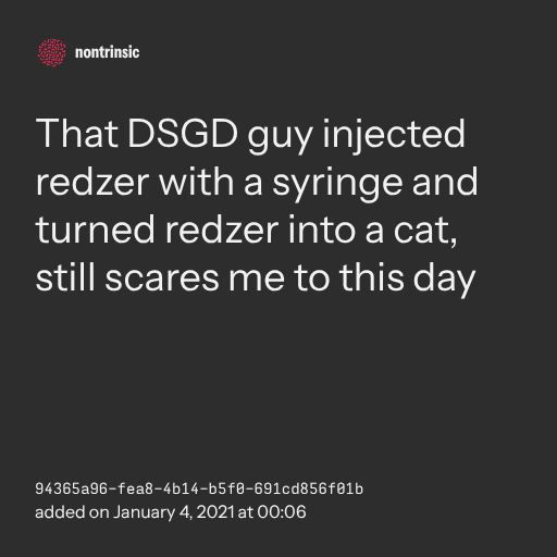 π€ shareThat DSGD guy injected redzer with a syringe and turned redzer into a cat, still scares me to this day