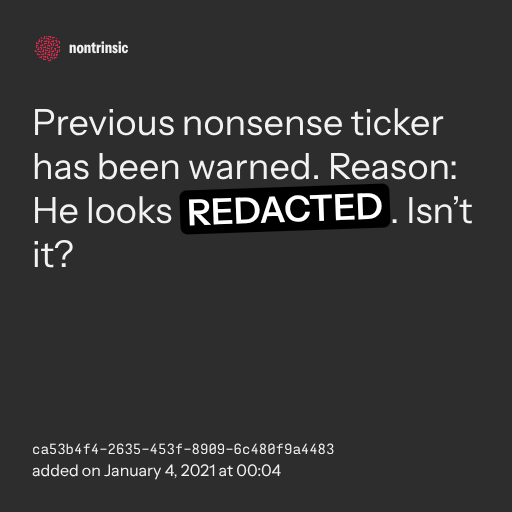 π€ sharePrevious nonsense ticker has been warned. Reason: He looks REDACTED. Isn’t it?
