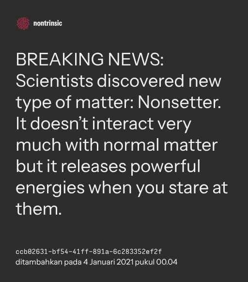 π€ shareBREAKING NEWS: Scientists discovered new type of matter: Nonsetter. It doesn’t interact very much with normal matter but it releases powerful energies when you stare at them.
