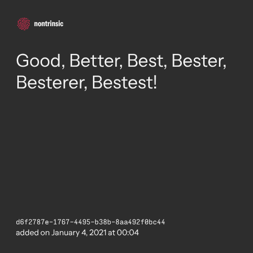 π€ shareGood, Better, Best, Bester, Besterer, Bestest!