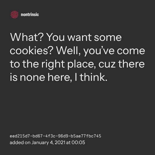 π€ shareWhat? You want some cookies? Well, you’ve come to the right place, cuz there is none here, I think.