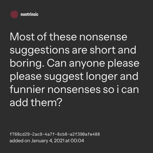 π€ shareMost of these nonsense suggestions are short and boring. Can anyone please please suggest longer and funnier nonsenses so i can add them?