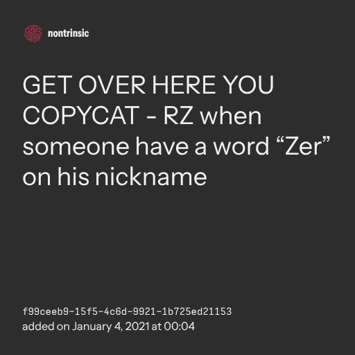 π€ shareGET OVER HERE YOU COPYCAT - RZ when someone have a word “Zer” on his nickname