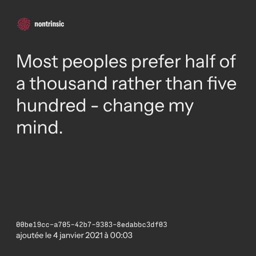 π€ shareMost peoples prefer half of a thousand rather than five hundred - change my mind.