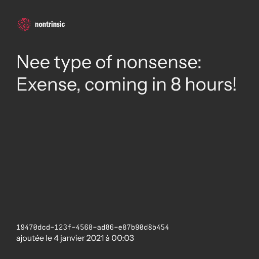 π€ shareNee type of nonsense: Exense, coming in 8 hours!