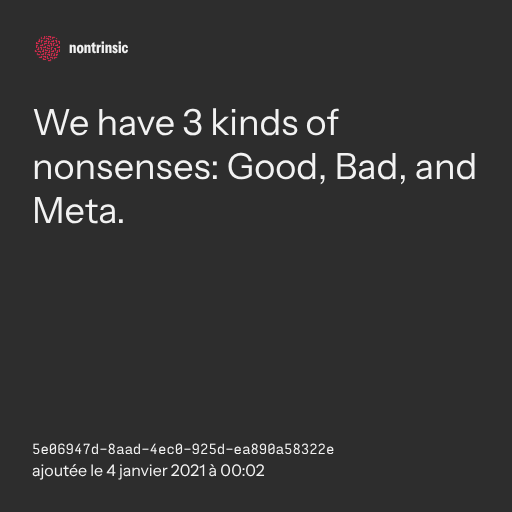 π€ shareWe have 3 kinds of nonsenses: Good, Bad, and Meta.