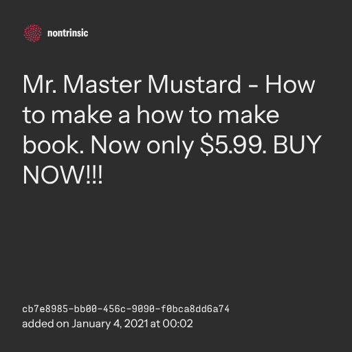 π€ shareMr. Master Mustard - How to make a how to make book. Now only $5.99. BUY NOW!!!