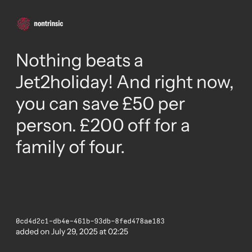 π€ shareNothing beats a Jet2holiday! And right now, you can save Β£50 per person. Β£200 off for a family of four.