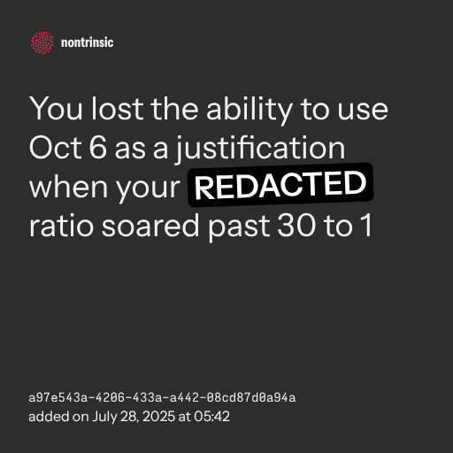 π€ shareYou lost the ability to use Oct 6 as a justification when your REDACTED ratio soared past 30 to 1